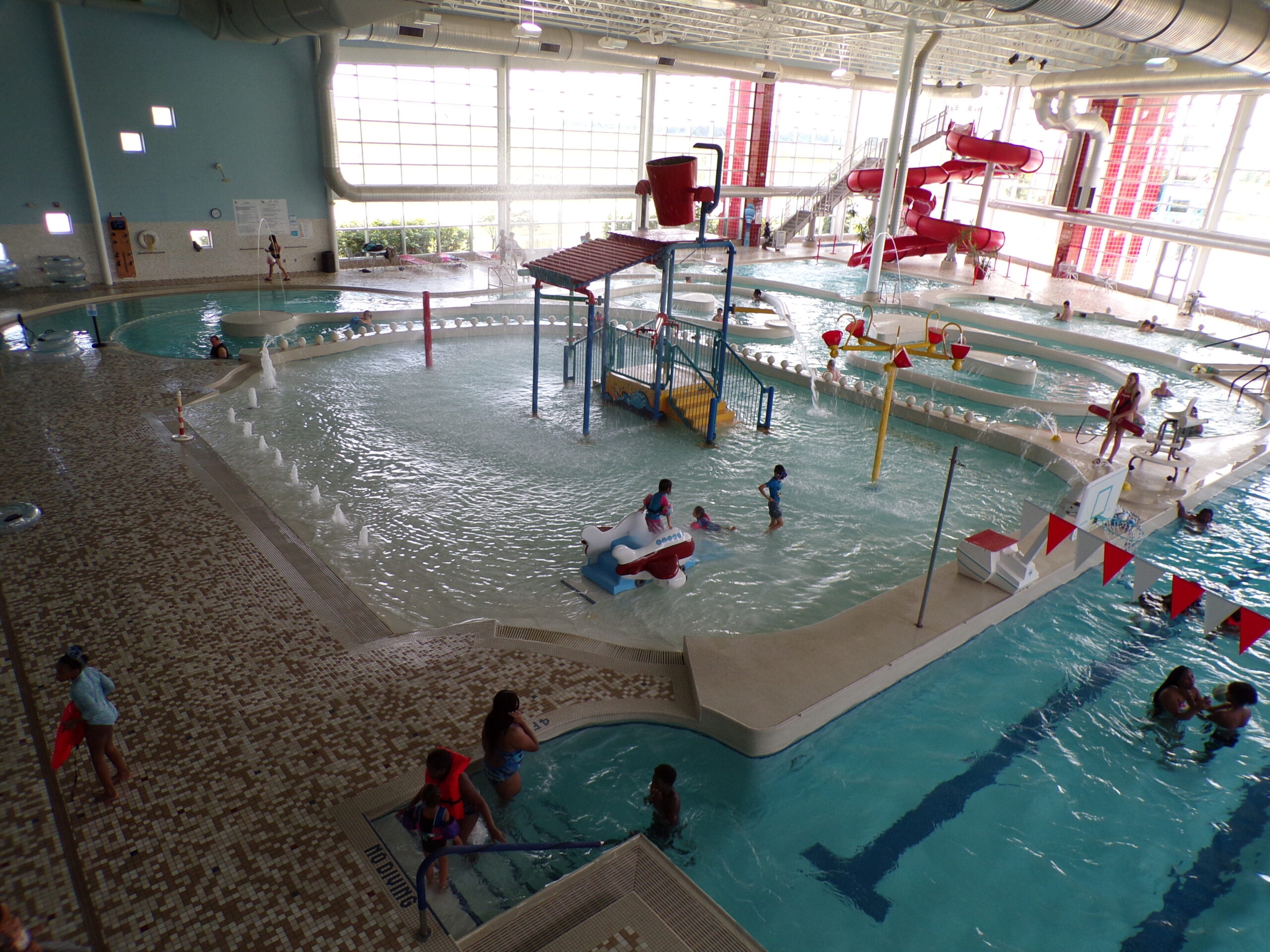 Romulus Athletic Center is a spacious, year-round community sports and fitness facility in Romulus, Michigan, offering extensive amenities across multiple areas. The center features a well-equipped fitness area with state-of-the-art cardio and strength equipment, a multi-court gymnasium for basketball, volleyball, dodgeball, and pickleball, and a comprehensive aquatics complex with five pools, including a zero-depth splash pool, lazy river, water slide, lap pool, and spa. Additional offerings include a 23-foot rock climbing wall, an indoor elevated walking/running track, rentable banquet and party rooms.